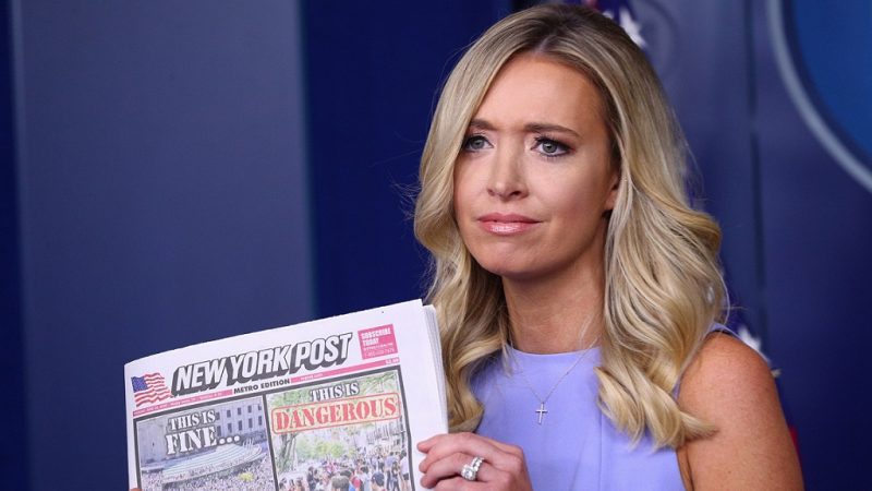 “Nuestra posición es que los medios de comunicación no nos imponen a nosotros sus directrices sobre el distanciamiento social, en base a ideologías o a la valía que crean que tiene una causa”, zanjó la portavoz, al tiempo que mostraba una portada del diario New York Post que tildaba de “hipocresía” las críticas vertidas contra Trump frente al apoyo generalizado que han recibido las protestas.