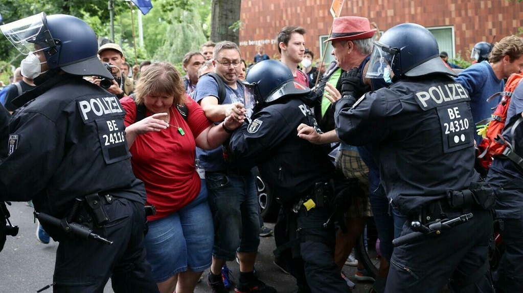 La Policía estaba preparada para una multitud mayor, con unos 2.000 agentes desplegados, incluidos algunos de otras fuerzas de Alemania. La gran mayoría de las personas caminaban sin mascarillas ni otras medidas de protección.